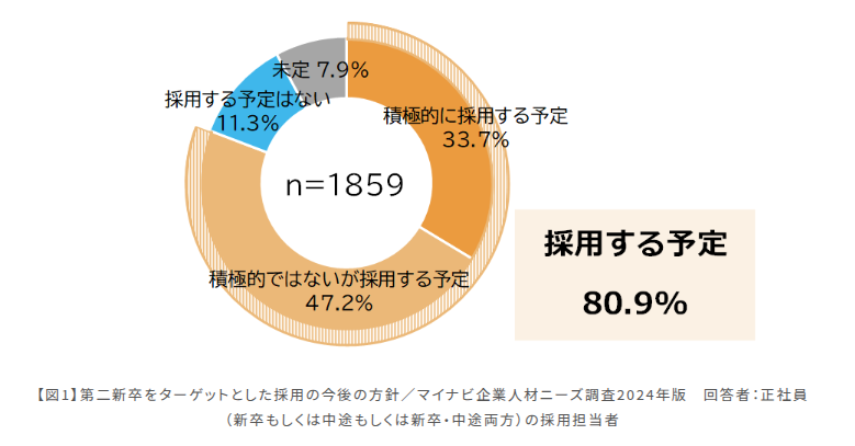 (以上“2025年以降の第二新卒採用ニーズは8割超-境目が曖昧になる新卒採用・中途採用(マイナビキャリアリサーチLab)より)